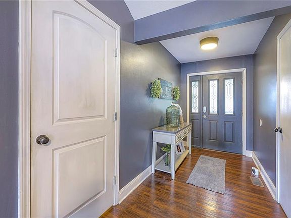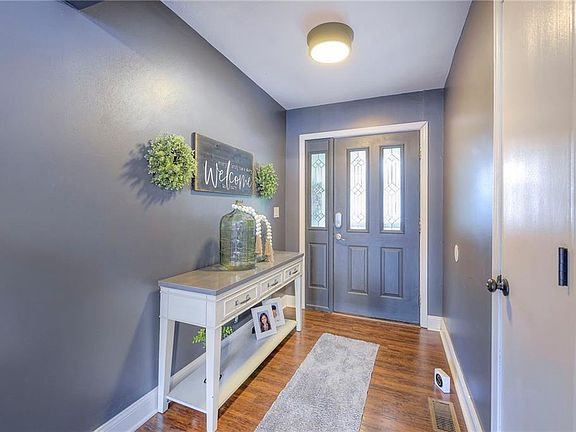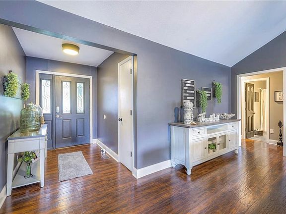This fully updated 4-bedroom, 3-bathroom gem in Harrisonville boasts an open-concept ranch design with newer wood flooring and a modernly renovated kitchen. It features all the latest amenities, including granite countertops, stainless steel appliances, and ample cabinet storage. The expansive granite island accommodates barstools, creating a welcoming eat-in space. Adjacent to the kitchen is a roomy walk-in pantry/laundry room, complete with a stylish farmhouse sliding door. The living and dining areas are flooded with natural light and offer views of the backyard, which includes a quaint cabana/deck, a newer above-ground pool, and a privacy fence. The living room is equipped with a gas fireplace and offers abundant space for relaxation. Upstairs, you'll find three bedrooms and two full bathrooms, while the fourth bedroom, featuring an en-suite bathroom and walk-in closet, is situated in the partially finished lower level. Additionally, the backyard adjoins a green space. Nice shed for extra storage. Seller updates since purchasing...main level interior paint, new decor light switches, replaced interior doors, remodel hall bath, replaced fixtures in several rooms, replaced pool pump 2023 and new AC installed June 2024.