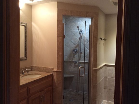 Home has been completely remodeled that include large chefs kitchen with granite countertops, ceramic tile floors with in floor heating, custom oak cabinets throughout . Walk in custom tile shower. 2 new bath has a garden/ tub shower with tile surround . Concrete driveway leading up to two man-dream garages. Excellent well water . Must see, so many more extras.