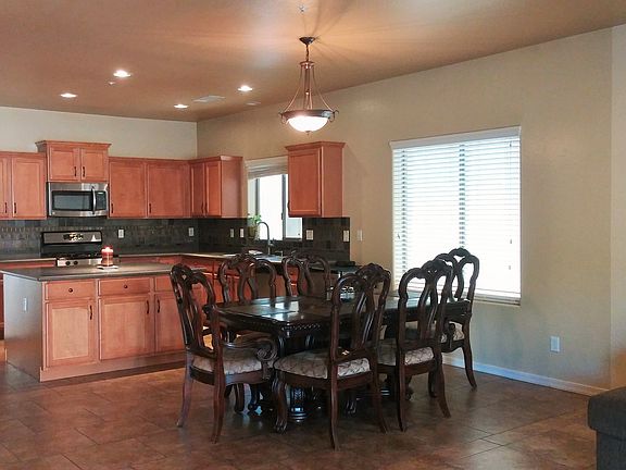 Fabulous Family Home! Large Open floor plan with 5 Bedrooms, Loft and 4 bathrooms.Large upgraded Kitchen w/island offers loads of cabinets space and a spacious walk in Pantry, Stainless Appliances including a Gas Range.Kitchen Counter top with Tile backsplash. One Bedroom on the 1st floor. Convenient upstairs Laundry Room & Loft Area with brand new carpet.Master Suite w/separate Tub & Shower and a Large walk in Closet w/custom shelving.Extended covered Patio All bedrooms have spacious walk in closets.Upgraded flooring throughout. Custom cabinets in the Garage. Don't miss this One!