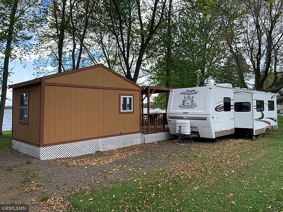FLEMING LAKE-Faces south. 2004 28' Prowler Regal RV included. 15x9.5 bunk house with deck. Storage shed. Well and septic holding tank. Nice sandy lake bottom. Dock included.