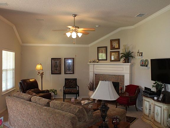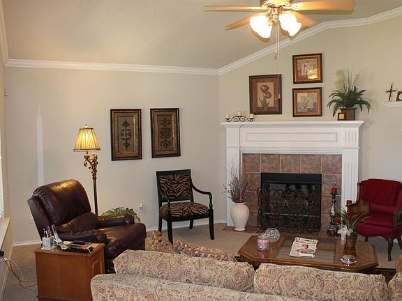Extremely Clean and Well Cared For Home! This property is light and bright offering an open concept family room and kitchen area including a formal and informal dining area. The master suite has cathedral ceilings, double vanities, a walk in shower, his and her closets plus an additional storage closet. The kitchen offers a large breakfast bar with bull nose corners and a nice dining area. Crown molding, surround sound! The landscaping is excellent and the front includes a welcoming front porch. The back offers a covered patio, extended patio area, a new fence, and a storage building. Sprinkler System!