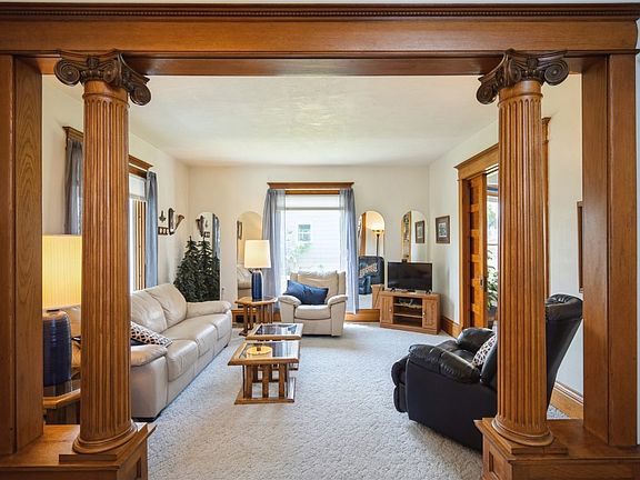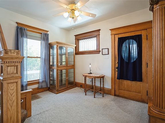 This may well be the best value in the area! Nearly 1900 sf Victorian inspired 4-5 bedroom, 1.5 bath features GORGEOUS natural woodwork including oak columns and custom built ins, pocket doors and more! New roof and siding. All newer replacement windows and HVAC system. Spacious kitchen with all appliances included. Expandable attic PLUS 2 stall garage with full 2nd story loft area for your shop or man cave! Located close to everything and ready for immediate possession! All this and more and aggressively priced FAR below market value for immediate sale!