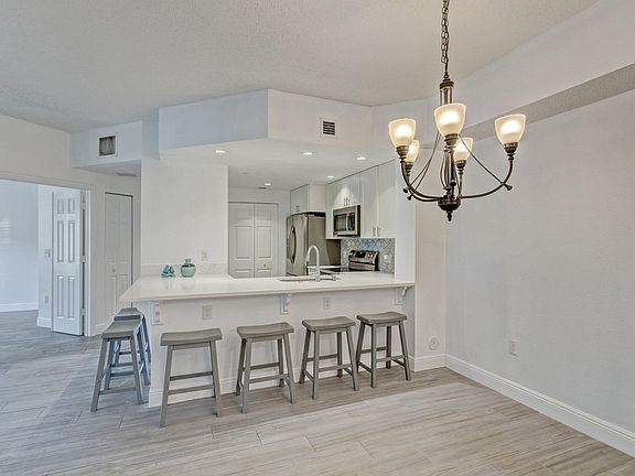 Beautifully presented, impeccably updated and ready for you to enjoy, this is a home for those looking to simply move in and relax. Every inch of this remarkable first-floor unit exudes contemporary style and sophistication plus you'll live within a desirable gated community with a host of amenities and a prized location close to everything you could ever need. Soft natural light floods the generous three-bedroom, two-bathroom layout with open-concept living spaces where everyone can come together at the end of the day. On-trend porcelain tile wood-like planks flow throughout plus there are muted color tones, statement lighting and flawless finishes. Preparing meals will be a dream in the quality chef's kitchen with quartz countertops, shaker-style cabinets, a feature tile backsplash and a suite of stainless steel appliances. There's also breakfast bar seating plus the eager cook is treated to views over the living and dining room, making entertaining a pleasure.