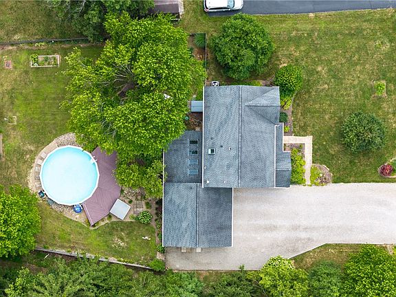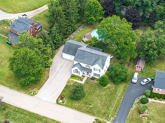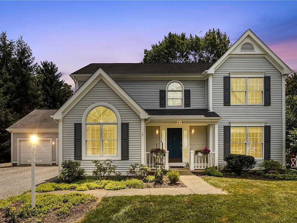 Welcome to this charming two-story home situated on a private and fully fenced 1/2-acre lot in Hampton School District! The light and bright kitchen with recessed lighting and glass tile backsplash features stainless steel appliances, pantry, breakfast area and eat-in area with bar stools. Enjoy natural light galore in the family room with picturesque window. The spacious primary suite has a vaulted ceiling with walk-in closet, while the other three bedrooms have ample closet space. The formal dining room boasts vinyl plank flooring. Ideal outdoor living space with a huge screened in and vaulted back patio with skylights, pool and hot tub. The enormous basement is ideal for storage and could be finished for additional living space. Convenient main level laundry! All appliances stay! Home Warranty Included!