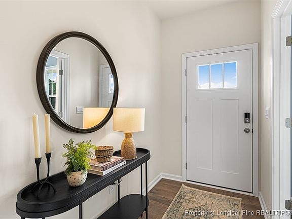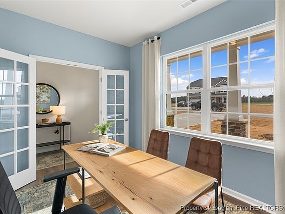 Discover the epitome of comfortable living in North Gate's new community with the exquisite Wilmington floor plan. This 4-bedroom, 2.5-bathroom home spans 2,824 square feet and seamlessly blends functionality with luxury. The main level hosts a dedicated home office, convenient laundry, and a sprawling open floor plan adorned with luxury vinyl plank flooring. The kitchen is a culinary haven, featuring two islands, granite countertops, and a walk-in pantry. Large bedrooms, each boasting walk-in closets, offer ample space for relaxation. The primary suite delights with a vaulted ceiling and a full bathroom, while another full bathroom connects to a hallway bedroom. This smart home is designed for modern living. With its separate dining room and an inviting atmosphere, this residence is perfect for both cozy gatherings and lively entertaining. Conveniently located just 10 miles from Fort Liberty. We invite you to come home to the finest country living at North Gate.