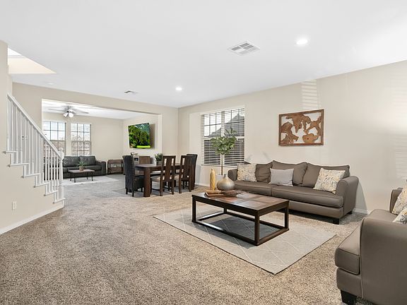 Gorgeous & well maintained two-story traditional cottage with view in Perris. Located near Rider St. and Avalon Pkwy/Ramona Expressway. Cul-de-sac street. Great curb appeal. Bright, clean and spacious. Maple colored kitchen cabinetry, stainless steel appliances, island with breakfast bar. Recessed lighting, large window over kitchen sink. Ceramic flooring. Large Family Room with a bank of three windows and a ceiling fan. Master Bath has dual rectangular sinks, set-in vanity, soaker tub and separate shower. 2 A/C units. Large fenced back yard. Message/call or Email owner. Unfurnished house. Renter is responsible for utilities. 1 to 2 month security deposit depending on credit. No pets and smoking inside of house.