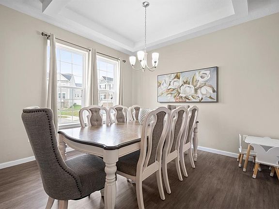 Welcome to this exquisite home located on a serene cul-de-sac. As you step inside, notice the elegance & sophistication. Stunning HW & neutral color palette create a warm & inviting atmosphere. Formal DR sets the stage for memorable gatherings & seamlessly leads to modern KT. White cabinetry, tiled backsplash & center island, make a true culinary haven. Open concept design into LV, allowing for effortless entertainment. Sunlight pours in through large windows, illuminating the space. Convenient ½ bath. Upstairs, the master en-suite awaits, offering a peaceful retreat. Tray ceilings add a touch of elegance, spacious walk-in closet provides ample storage. 3 generously sized BDs provide plenty of space for family or guests. Full bath & laundry room add practicality. Finished LL features an expansive game room, ideal for leisure activities & entertaining. ½ bath & storage room. Fenced-in backyard offers privacy. Storage shed & 2 car garage provide extra space for your belongings.