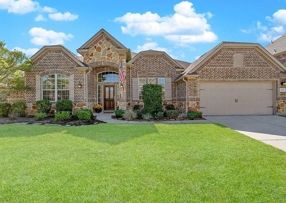 If you're looking for a feature-rich home from a high-quality builder in the Desirable Estates of Legends Trace, then you must come see this stone and brick 3 bedroom plus a flex room w/French Doors, 2.5 bath and 3-CAR GARAGE Anglia home LOADED w/ LUXURY! GOURMET GRANITE ISLAND kitchen with rich 42" cabinetry, SS APPLIANCES, breakfast bar & Walk In Pantry opens to family & breakfast rooms. Stunning HARDWOODS, 36" cast stone fireplace w/Raised Hearth & remote in a Spacious Family Room w/Large Windows. French door study. Huge private master retreat with separate garden tub/shower & vanity with nice size walk-in closet. Secondary bedrooms are roomy and also have walk in closets. Utility room has easy access to garage. Spacious Fully Fenced Backyard w/Relaxing covered patio. Great, quiet community w/ Highly Rated Schools and amenities for the entire family. Just a stones throw from all The Woodlands has to offer. Please see floor plan & survey in docs & tour (located at the top R icon)