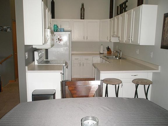 Neat clean twin with vaulted ceilings, finished and heated garage with some updates. Low specials and deck in back. All appliances included. Flood line doesn't touch home