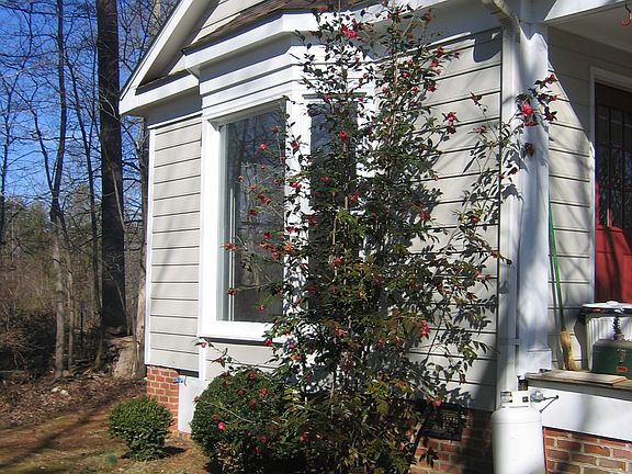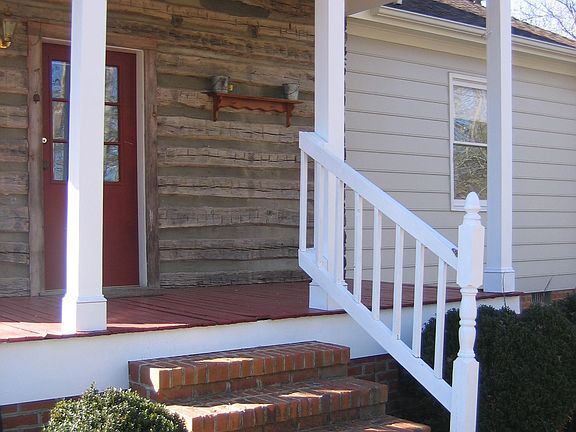 2 BR, 1 full BA, log/frame home, approx. 1100 sf, on 2 wooded acres in SE Greensboro. 15 minutes from downtown, convenient to I-85/40 bypass. Eat-in kitchen with bay window, frig with icemaker, gas (propane) stove, dishwasher, stack washer/dryer. Hardwood floors except in MBR and BA. Beamed ceiling in LR. Cathedral ceiling in MBR with ceiling fan. Wood burning fireplace. Pull-down attic stairs. 2 porches, garden space, 2-level storage building. Central heat and air. Well and septic.