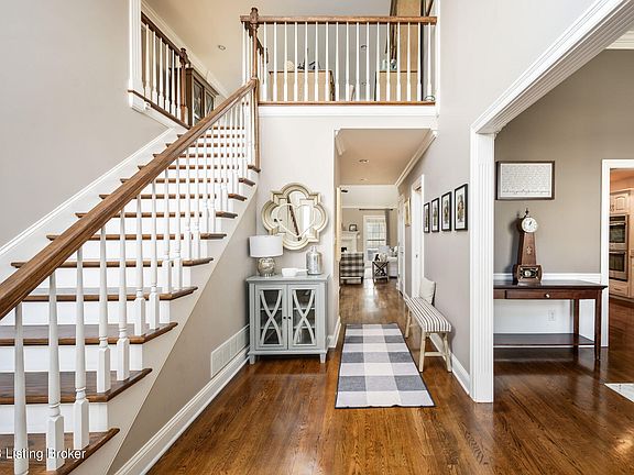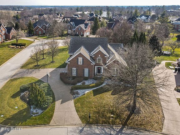 Elegance and comfort collide in this stunning home in the desirable Hillcrest neighborhood of Prospect. Situated within the Award-Winning North Oldham school district, this remarkable brick home features almost a half of an acre of manicured corner lot and convenient circular driveway, five bedrooms and three beautiful floors of over 3800 finished sq ft of living space. With entertaining in mind and elaborate details, each room has been meticulously crafted to offer an impressive custom-built experience. Enter into a formal dining room with a unique barrel vaulted ceiling, arched window and decorative trim. Sleek hardwood flooring leads you to an entertainer's dream in your two-story living area and cozy fireplace. The open flow folds into your gourmet eat-in kitchen with stainless steel appliances, gorgeous granite countertops, abundance of cabinetry and modern breakfast bar. The first floor primary bedroom ensuite features a tray ceiling and stylish bath with double vanities and granite countertops, as well as a soaking tub and separate glass shower. The first floor is complete with a laundry room and half bat, as well as access to your attached, two-car garage. Upstairs, you have three spacious bedrooms, a full bath and a lofted area perfect for crafts, office space or as a peaceful reading nook. Not to be outdone, your finished basement has an additional bedroom and full bathroom. This is the sweet spot for entertaining with a great room and columned bar with billiards room, wet bar with beverage cooler and an eat-in island. The lower level is complete with tons of additional storage space and comfort. Peaceful time outdoors awaits you in a spacious screened-in porch where you'll unwind with the privacy and scenery of arborvitae and meticulous landscaping on your large corner lot. The Hillcrest community offers tennis courts and swimming, as well as a clubhouse and playground. Conveniently located just minutes from Prospect's retail, restaurants, and expressways, this one is a must-see!