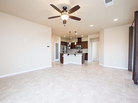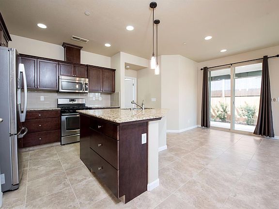 IMMACULATE move-in-ready McCaffrey home with 2 bedrooms plus a den/dining room that can easily be converted to a 3rd bedroom. Granite kitchen counters, and stainless steel appliances with 18x18 inch floor tiles throughout the eating areas and living areas, carpet in the bedrooms. Energy efficient home with extra insulation added to the interior walls and the garage. This home is also equipped with a tankless water heater. Patio king insulated covered patio and large grassy area in the back. This is a newer community with neighborhood parks. No neighbors behind this home. Clovis Unified School District.