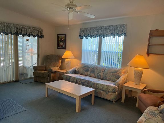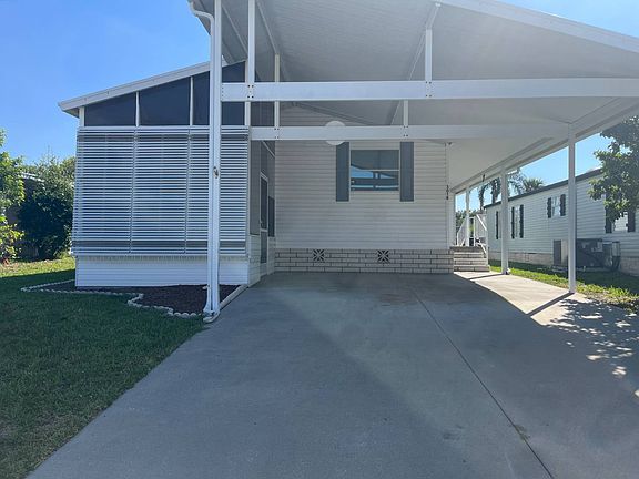 3018 Kiwi Place, Ellenton FL 34222 Ridgewood Estates 55+ Mobile Home Community This is a mobile home for sale in a lot lease community. This 1999 2BR/2BA Palm Harbor is located in the pet-friendly, gated community of Ridgewood Estates! The home has been updated and includes a 2024 A/C, 2022 Roof and a 2025 4-Point Inspection. There is a double driveway with a front set lanai to enjoy your morning coffee! There are cathedral ceilings throughout the home giving it a spacious open feeling! The kitchen has 12-inch x 12-inch tile and ample cabinet space with a breakfast bar for a quick meal. The dining room is adjacent to the kitchen for hosting family dinners. The master bedroom has cathedral ceilings and has double sliding closet doors. The master bath has a single-sink vanity with extra counter space. There is a cabinet over the toilet for extra storage and a double walk in shower. The guest bedroom is located across from the main bathroom and has built-in cabinets. The hall bathroom has a single-sink vanity with tub/shower combination. This is also where the washer and dryer (included in the sale) are conveniently located with extra shelves. The lot rent is $1149.34 & includes lawn care, edging & mowing, 2 pools, 2 clubhouses, pickleball, tennis, shuffleboard courts and all activities!! This is Florida living!! The home is mostly furnished/turnkey!! Just pack you suitcase and come live the Florida Lifestyle! Florida MH Sales, LLC cannot guarantee or warrant the accuracy of the properties information, measurements, or condition. All homes are sold " as is". The community sets the lot rent & is subject to change. The community must approve all buyers before closing on a negotiated sales contract.