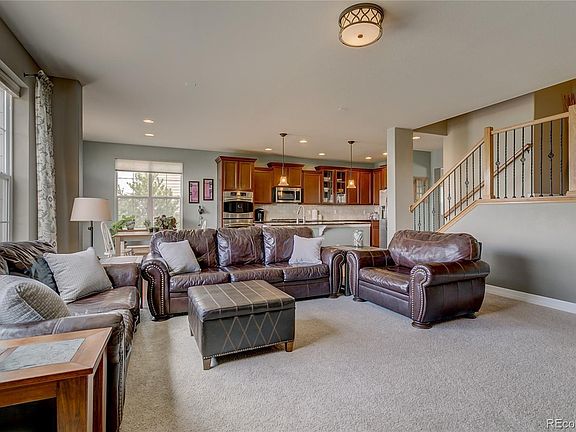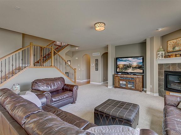 Spectacular Mountain views surround this smartly designed, well thought out and extremely well maintained 5 bedroom, 5 bathroom, 5000+ sq ft beautiful home in the highly desirable Red Hawk community. Eat-in Kitchen features large island, granite slab counters, stainless appliances, large pantry and plenty of cabinet space. Main floor bedroom with 3/4 bath is perfect for guest or office. Main level is light, bright and also features a formal dining room as well generous living and family rooms. Dual access Iron staircase leads to the upstairs which features 4 bedrooms, including 1 guest room w/en-suite bath. Extra spacious vaulted ceiling Master Bedroom has separate sitting area, huge walk-in closet and large 5 piece bathroom. Laundry- is also upstairs with the 4 bedrooms! Lower level is a fully finished basement with 9 ft ceilings, plenty of light and open space galore. 2 plentiful Storage rooms. 3 car south facing (sun soaking) tandem garage. Backyard is the largest in the neighborhood, with deck, basketball court and an abundance of room to play or entertain. Walking Distance To Red Hawk Golf Course, Footsteps away from Colorado outdoor living with access to amazing walking trails & open space. This stunning home will exceed expectations!