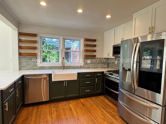 Welcome to 3018 Medlin Drive, a beautifully updated 3-bedroom, 2-bathroom bungalow that perfectly blends style with timeless charm. Located just minutes from downtown Raleigh, major highways, grocery stores, dining, and shopping. Inside, you'll find an updated open-concept kitchen featuring quartz countertops, an oversized island, and skylights that flood the space with natural light. The eat-in kitchen flows seamlessly into the living area showcasing wood floors, fresh paint, and updated bathrooms with quartz countertops. Custom shelving in the closets maximizes storage and organization. A fully screened front porch overlooks the front yard with mature trees, perfect for relaxing evenings. Out back, enjoy a private retreat complete with an oversized deck, pergola, fully fenced yard, raised garden beds, and a shaded patio. 12 or 24 Month Lease, Security Deposit and Lease Administration fee applies. This home is security deposit free for qualified applicants via Obligo! AVOID RENTAL SCAMS: Real Property Management Wake County is a licensed Real Estate Agency that exclusively markets and represents this listing. We do not advertise on Craigslist. We would never ask you to wire money, request funds through a payment app for initial rent, deposits, or take the key after your showing to move-in. AMENITIES: * Deck * Wood Floors * Central heat/air * Screened Porch * Quartz Countertops By submitting your information on this page you consent to being contacted by the Property Manager and RentEngine via SMS, phone, or email.