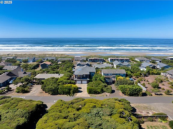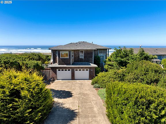 Watch the waves dancing on the ocean from this oceanview oasis with panoramic views. Experience the magic of the Oregon coast from this beautifully maintained and intelligently designed home in the highly sought-after community of Sandpiper Village. Unobstructed, 180-degree views stretch from the majestic Cape Perpetua to the iconic Seal Rock, offering a stunning backdrop for daily life. Step inside the main level's open-concept living space, where a wall of windows floods the room with natural light and frames the incredible ocean panorama. Radiant heated floors and a central vacuum system add comfort and convenience throughout the home. The spacious kitchen, perfect for any home chef, boasts abundant counter space and ample cabinetry. A glass slider leads to a split covered and open deck, an ideal spot for whale watching or simply enjoying the ocean breeze. This home provides three bedrooms and two and a half bathrooms, including a primary suite with a generous walk-in shower and a double-sink vanity. An additional laundry/craft room and plenty of storage space ensure a seamless living experience. A handy dumbwaiter makes moving groceries and supplies a breeze. The exterior features easy-care landscaping and a NEW ROOF INSTALLED IN JULY 2023. Just a short walk from your doorstep, a dedicated easement leads to miles of flat, sandy beach, perfect for morning walks or sunset strolls. Enjoy quick access to the charming downtown of Waldport and a short drive to Newport for additional shopping and medical services. This home is a true gem—a blend of stunning natural beauty and thoughtful design, ready for you to create your coastal sanctuary.
