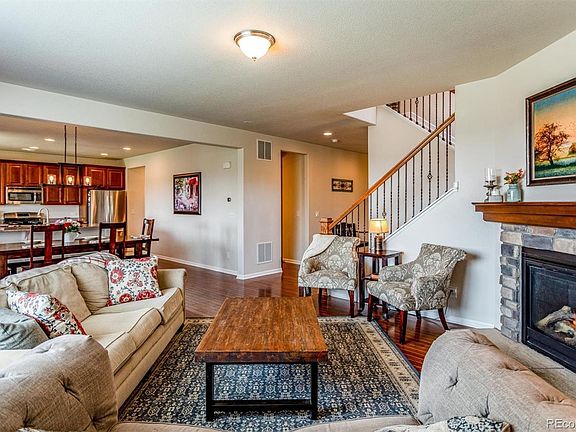 Welcome to this fantastic new listing in The Meadows of Castle Rock! This home is situated on an ideal lot that does not immediately back to other houses, providing great views and privacy. The property features a very desirable floorplan, including a main floor office, 4 bedrooms upstairs, a large open loft on the upper level, and a convenient upper-level laundry room. The basement is unfinished, offering many options for potential future expansion. As you step inside, you'll appreciate the wood floors and quality finishes throughout the main level. The main floor is open with a large great room/kitchen that provides great views from the entire space. The kitchen boasts stainless steel appliances, ample cabinet space and storage, a pantry, and access to the covered patio overlooking the low-maintenance yet very usable backyard. The cozy gas corner fireplace in the family room creates a welcoming ambiance, perfect for relaxing evenings. Hosting gatherings is a breeze in this home with its open floor plan and huge kitchen island, ideal for serving food and entertaining guests. Enjoy the sunrise and views of Castle Rock from both the covered back patio and the flat backyard elevated above the open area behind the home. Upstairs, the spacious loft area is wired for sound and provides a perfect spot for a second entertainment area or kids learning/rec space, offering an additional area for entertainment away from the main living area downstairs. The popular Meadows neighborhood is family-friendly, with lots of nearby trails for walking and outdoor activities, as well as amenities such as a pool, dog parks, playgrounds and more. Don't miss out on the opportunity to make this your new home in The Meadows of Castle Rock!