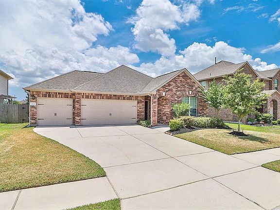 Spacious one story home with a true 3 car garage! Split floor plan with large secondary bedrooms. This 3 bedroom/ 2 bath home has a floor plan to accommodate the practicalities of everyday living. The kitchen is a cooks dream! Dark rich cabinetry, generous food preparation spaces, island, Granite counter tops and ample storage. Tile through main traffic areas for ease off care. Dining room is large enough to function as a flex space if that better suits your lifestyle. Primary bedroom has rich wood like floors and en suite features glass walk-in shower, large soaking tub and dual vanities. Extended covered patio out back and no rear neighbors! Close to shopping and easy access to Grand Pkwy. Zoned to Conroe ISD schools. Come fall in love with all this home has to offer!