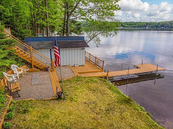 The 2 bedroom 2 full bath Crescent Lake home includes a boat house, 1 car attached garage, & storage shed. The kitchen has oak cabinets with granite counter tops and stainless steel appliances. It is open to the dining room with a door to the wrap around lakeside deck. The living room enjoys a 3-sided gas fireplace, a beautiful lake view and has an office/den area. There are two main floor bedrooms, & a large bathroom with double sinks, jet tub & separate shower. The walk out lower level features a brick wood burning fireplace, spacious family room/bunk house, full bathroom with new shower & laundry room. The attached garage is 16 x 24, storage shed 10 x 14, & boat house 12 x 20. There is a lakeside patio 14 x 10, dock, and the best swimming frontage. Come jump in the lake!