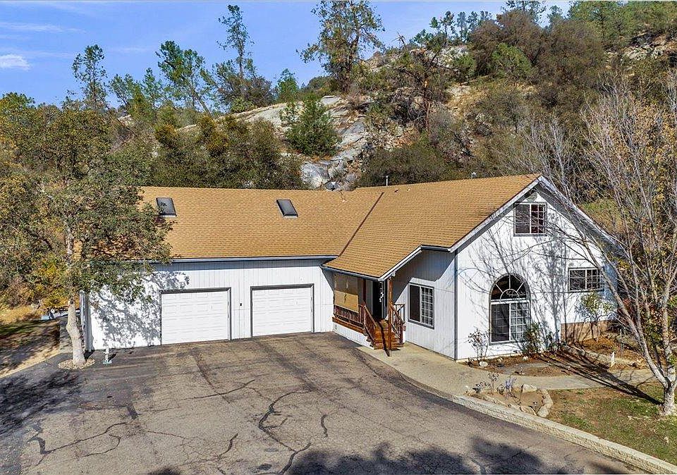 You'll love this spacious custom home in a fantastic Prather location, with a shop, pool, and paved access to the garage. The parcel is gated and partially fenced, and a beautiful, natural wall of rocks fills in where the fence ends to create the perfect, private backyard. The front yard has a circular drive, beautiful landscaping and mature trees, all with irrigation, and a seasonal pond. The home has an oversized two car attached garage, as well as a detached garage, and a separate shop with a second story loft, and covered patio area behind it. RV hookups are complete with 30 amp service, water, sewer, and electric. The home opens to the spacious kitchen with the huge pantry, the dining area, and sunken living room. There are two bedrooms and one bathroom down the hall, and at the end of the hall is a large family room with high ceilings and a wood stove, opening to the back deck and pool area. (Currently being used as a bedroom.) Upstairs are the master, another bedroom with a private bathroom, and plenty of room for his and hers offices. There is storage galore! The home has a Safe House alarm system, and Bose sound system. Underneath the house is even more storage, with garage door access. This home was built by the contractor for himself with 2x6 construction, and was set up with a gravity feed water tank, so the water supply won't be hindered by power outages.