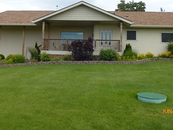Single family residence with 3 bedrooms, 3 full baths, office family room, large single car garage, large covered deck on back, small covered deck on front, and an updated kitchen (2012). Tiled entry, laundry room and 2 baths. 2,580 sq.ft. on 1 1/2 acre lot. 400 Amp. electrical service with 40 Amp. to RV receptacle. 36 X 48 shop with a 10 X 10 lawn mower shed attached. A separate garden shed, water softener, 2 separate heatpump systems, pellet stove in family room, lp gas fireplace insert, security system with 3 cameras installed. TUGS system for lawn area (9 stations). Has a whole house ventilation fan and attic exhaust fan, New 1 1/2 HP irrigation pump (2016). Insulated and heated fruit room in the shop. 196' well, septic tank system, with 0.75 acre water right with Hermiston Irrigation District.