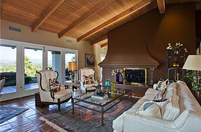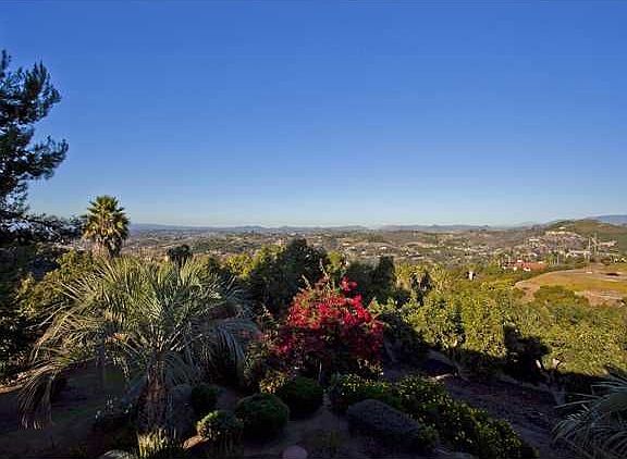 Enjoy unparalleled panoramic views from the patio that stretches the length of this wonderful home! Stunning dual-sided fireplace--a focal point in both the formal living & family rooms. The kitchen is spacious,the bedrooms generous,and you'll love the abundant storage! Soaring ceilings & sunny rooms give a sense of space,but the feeling is one of casual elegance,warm & inviting,with wood ceilings & gleaming Spanish tile floors. This 4 ac view property is private w/working avocado grove! No HOA fees!,,