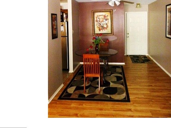 First floor condo w/ premier private location in the back of the community. 2 bedrooms, 2 full updated baths. Upgraded kitchen w/stainless appliances, gas cooking & lots of cabinets and separete dinette. Large living room w/alcove. Master bedroom has private bath and walk-in closet. Laundry room w/newer washer & dryer included. Ceiling fans. One parking spot allotted per unit but plenty of visitor parking. Water and sewer included in association fee.