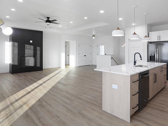 As you enter, you're greeted by a spacious living area featuring a cozy gas fireplace, creating a warm and inviting atmosphere. The large kitchen is a chef's dream, equipped with quartz countertops, slate appliances, and lots of cabinets for storage. A sizable walk-in pantry provides ample storage, ensuring your kitchen remains clutter-free.