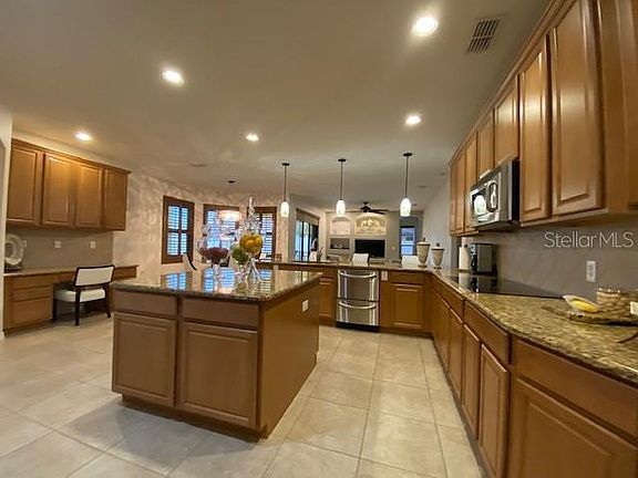 Don't miss out on this impeccable, elegant estate type home. You will be impressed the moment you arrive and are greeted with a full paver drive way, water fall, high ceilings & an abundance of upgrades. This hard to find one story, 5/3 located in the highly desired SHINGLE CREEK RESERVE AT THE OAKS, a GOLF and BOATING community is a fortress of a home uniquely constructed with POURED CONCRETE for exceptional strength and reduced utlity bills and details that will satisfy the most demanding buyer. You will love the open kitchen with an oversized island connecting to a comfortable family room & large covered patio...ideal for entertaining or making fun family memories. Kitchen continues giving you benefits with extended cabinets (plenty of storage), top of the line stainless steel appliances, and lots of grantie counter tops. Substantial master bedroom features tray ceilings, his & her closets & nicely appointed master bathroom boasting a separate roman tub makes this suite a perfect retreat. One of the guest bedrooms is adjacent to a full bathroom perfect for the teenager/college scholar or a mother-in-law suite. Two more large bedrooms share a tastefully done bathroom that combines solid amenities with style and function. The fifth bedroom has been used as a studio, gym or can be used as an office to accommodate today's demands of the virtual work environment. Your fenced-in yard with a big covered patio will become your favorite place to watch fireworks or drink your morning coffee. Minutes from theme parks, short drive to the Beach, 25-30 mins to airport, close to restaurants, shopping, and Lake Toho (boating & bass fishing at it's best), makes this home a must see. All dimensions are estimated, buyers' responsibility to verify.