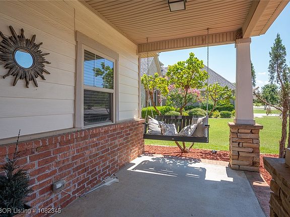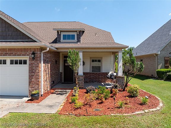 Welcome to Brighton Place! Enjoy entertaining in the open concept living room, spacious kitchen with cooktop, large prep/serving island with seating and a generously sized dining area. Luxurious primary suite with en suite bathroom (dual vanity, jacuzzi tub & walk in shower) on the main level boasts plenty of walk in closet space plus one closet is a FEMA safe room! Guest rooms share a jack & jill bathroom and offer impressive walk in closets plus there's an office/flex room and a powder room - all located downstairs. Just up the beautiful wood staircase you'll find an oversized bonus room, a full bathroom, large walk in closet and a 4th bedroom or playroom! Covered patio with wood burning fireplace, privacy fenced backyard joins one of the neighborhood walking paths through the back gate. Don't miss your opportunity to live in Brighton Place where you'll enjoy the neighborhood playground and a serene pond with paved paths for neighborhood residents. Conveniently located on Fort Smith's East side near schools {Woods & Chaffin}, FS public library branch, restaurants & and shopping. Just 5 minutes from Mercy Hospital and Carol Ann Cross Park where fishing, hiking and playing are always on the to-do list! Wood flooring, granite, built ins, crown molding, 3 car garage and plenty of attic storage space. Roof August 2022, Bedroom carpet 2019, Crystal chandeliers 2023, Interior Paint 2023, Backyard privacy fencing, new landscaping 2025. *Virtual staging has been used for some photos