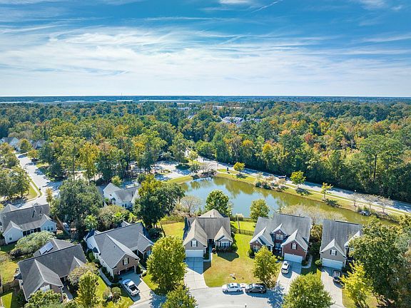 Ideally located just seven miles from historic downtown Charleston, Carolina Bay offers amazing neighborhood amenities, convenient access to several area beaches, and was developed with a focus on providing ample community green space - making it optimal for enjoying the outdoor Lowcountry lifestyle. This beautiful home sits on a premium homesite overlooking a pond, offers an open floor plan with soaring ceiling heights and is flooded with natural light. Architectural details include ten foot ceilings, which are complimented by attractive crown moldings, a generous number of windows, and numerous entertaining areas. A tray ceiling anchors the dining room, which is adorned with a gorgeous antique gold light fixture, wainscoting, and overlooks the water view.The living room's main focus is the gas fireplace that is surrounded with shiplap and finished with a distressed wooden beam mantel. The spacious kitchen features an eat-in area, an island, plentiful storage, granite countertops and stainless steel appliances - including a gas range. One of the home's key features is a bright sun room that opens to the back patio and overlooks the pond directly behind the home. The first-floor master suite also enjoys the water view, and is complimented by a well equipped en-suite bath with soaking tub, walk-in shower, water closet and dual sinks. The master closet has been outfitted with a premium organization system similar to California Closets. Two secondary bedrooms (also on the first floor) are separated from the master suite and share a stylish hall bath. The second floor contains a large bedroom with ensuite bath which is perfect for visiting guests, or could act as a private office. Other notable features include a fenced in yard, two car garage and a newer HVAC system (2020).