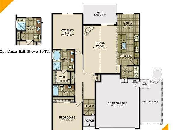 2 bed, 2 bath, 2 car, open concept kitchen with pantry, granite throughout, tile in the master bathroom, large island in kitchen, soft close cabinets, custom tile walk in shower in master, solar ready, stainless steel appliances (refrigerator, stove, dishwasher, microwave), 18 month warranty on home, 10 year siding warranty, category 4 shingles, complete landscaping.