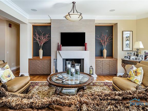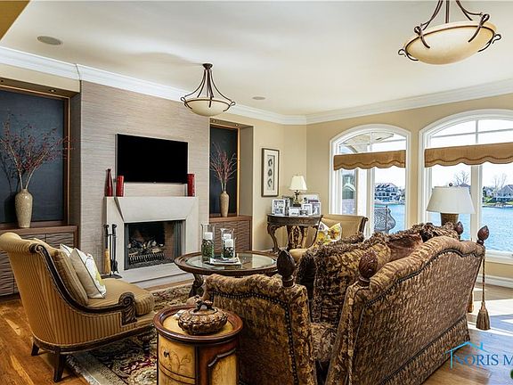 One of the finest quality-built homes spectacular water views. Great room features custom built-ins, gas fireplace & crown moldings. A gourmet kitchen top-of-the-line appliances & a breakfast room. The master a walk-in tile shower, makeup area, large closet & window seat, plus a sitting area. 2 bedrooms upstairs large baths & closets. The den/4th bedroom has wood floors, gas fireplace & built-in custom cabinetry. The lower-level media room & an entertainment area a full kitchen & bar. The outdoor living area a built-in grill area & covered bar overlooking the dock & beach area.