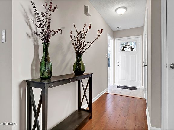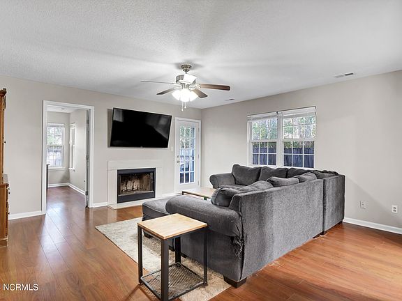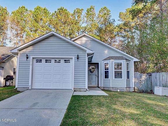 As you enter the foyer, you will notice that the entire home was freshly painted. On the right side is a dining room with a bright bay window which awaits its new owners to host their next holiday gathering. A spacious kitchen offers nice granite counter tops, stainless-steel appliances and freshly painted cabinetry with ample storage. From the kitchen you can access a large living room. The lovely living room welcomes you and feels as though it was made for a friendly gathering and cozy evenings around the gas fireplace with a nice glass of wine, reading your favorite author, playing family games, conducting deep conversations or just watching movies. A private Master Suite offers a walk-in closet and a bathroom. Two spare bedrooms share another full bathroom. A coat closet and a linen closet are ready for all your little extras. A nice patio overlooks the fenced backyard which is just asking for some fun to be had. A garden shed will please every handyman. Enjoy lovely Carolina evenings while roasting Marshmallows at an already established fire pit or take a ride to the highly rated Topsail Island or Emerald Isle beaches. This property is Southern Living at its finest!