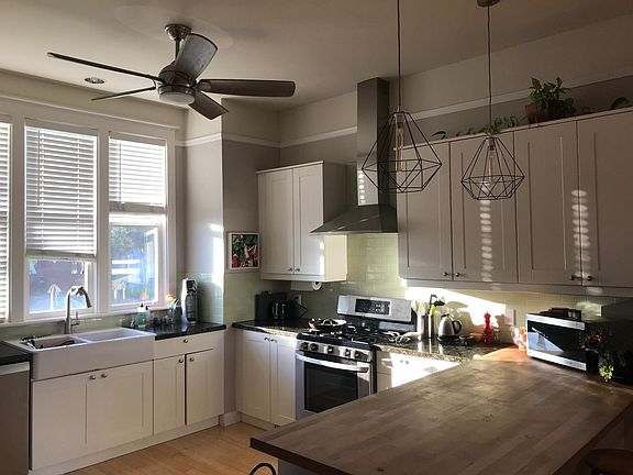This lovely and modern 2 story, 3 bedroom/2.5 bathroom house has been well maintained and loved by its owners. Hardwood floors throughout, with high ceilings and skylights, plenty of space makes this the perfect house for a family or group of friends. It would be perfect for visiting scholars or faculty at any of the nearby universities in the East Bay or San Francisco. 5 miles to UC Berkeley and 10 miles to the heart of San Francisco, located close to all of the major free-way entrances, getting around is a breeze. Secure gated parking in the driveway for 2 cars. A lovely private garden and backyard is accessed through two sets of double French doors off the great room. The backyard area is quiet, with lots of birds chirping and butterflies in the Springtime. It includes a raised bed garden, where you are invited to plant things and watch them grow. Propane fire pit, gas grill, small table for al fresco dining and large couch great for hosting. Comes with bluetooth speakers. Inside, you will find double paned windows providing lots of light filled rooms, gas fireplace, plenty of storage space, and everything you will need to make this house your home. House comes fully furnished and turn key ready. Owner pays for trash, water, and high-speed fiber internet. Renter will pay for PG&E (gas and electric). Monthly housekeeping is covered by owner as well. 1st Level Consists of large open great room that includes kitchen, large dining table that seats 8, living room, small office/reading nook area with desk, closet and laundry room with half bath. Kitchen with all modern appliances, including espresso machine, dishwasher and microwave. Living room with plenty of seating/space and comes with Kiplisch speakers and projector and screen for theater views. Washer and dryer located in half bath. 2nd level One bedroom with large closet is currently being used as an office. Second bedroom with large closet, dresser, desk, and queen size bed. Nice full bathroom with bathtub/shower. Huge hall way double closet for tons of storage space. Master bedroom comes with dresser, queen size bed with lots of storage, and two large closets. En-suite bathroom is large with shower, jacuzzi tub, double sink, and separate toilet room. The Dogtown district, is located in culturally vibrant West Oakland. Situated 10 miles to the heart of downtown San Francisco - you get access to San Francisco, while enjoying the diversity of Oakland and the warmer temperature! This neighborhood is perfect for people who want to experience both sides of the bay. House is located on a quiet street, with some neighbors who have been here all of their lives. This is an up and coming neighborhood, so you will see signs of gentrification. If this makes you uncomfortable, this might not be the place for you. Oakland has its challenges for sure - make sure you do your research. Having said that, we love it here and have never felt unsafe. Oakland is home to the Black Panthers and is full of awesome art, history, and culture. There is a local bodega a few doors down and a local co-op grocery store 1.5 blocks. We welcome people from all backgrounds, colors, cities, etc. Oakland is an amazing city that has a lot of energy, spirit, and history. Looking to rent home the beginning of April for a 6 month to one-year lease. Preference given to one year lease. Move-in/Move out dates flexible. This home is the owner's primary residence. Owner will be traveling for 12 months. House may be rented at minimum, 6 months but preference given to 12 months. Owner pays all utilities except gas and electric. Owner provides monthly housekeeping service. Well behaved pets will be considered. Secure driveway with space for 2 vehicles.