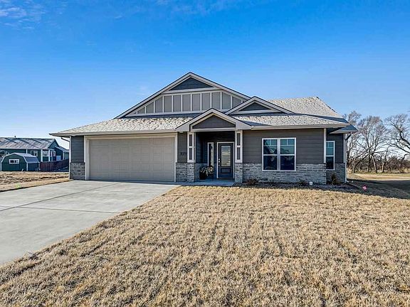 Phenomenal home on a great lot in Nottingham Estates! You'll love the zero step entry, beautiful finishes and well designed floor plan. Open concept, yet bedrooms are separated for privacy. Beautiful modern finishes meld with timeless classics to make the perfect combination of class and comfort. Low maintenance and stylish luxury vinyl plank floors, granite and quartz throughout, wide molding, beamed ceilings and tons of natural light make this home a winner! Don't miss the main floor safe room located in the master closet. The FEMA compliant shelter means you're only steps away from safety should those tornados threaten. No need for that basement (and the stairs, and the sump pumps and the worries)! Just minutes from the Rock Road Corridor in Derby with an array of shopping and dining PLUS it's located in the award winning Mulvane School District! It's the best of both worlds!