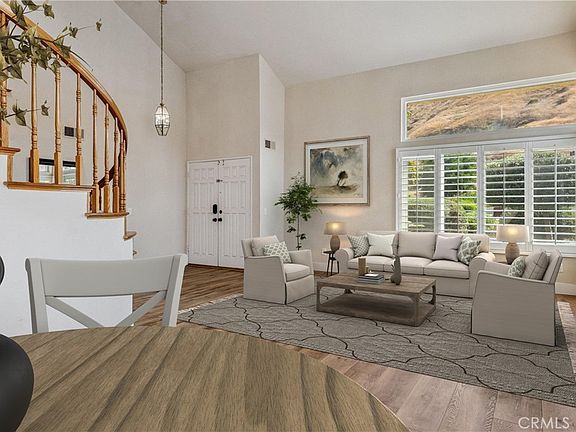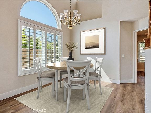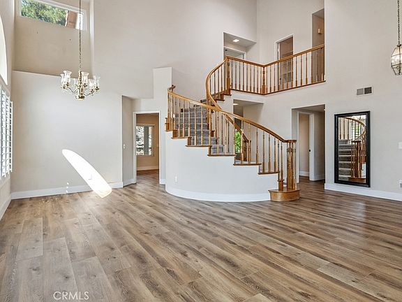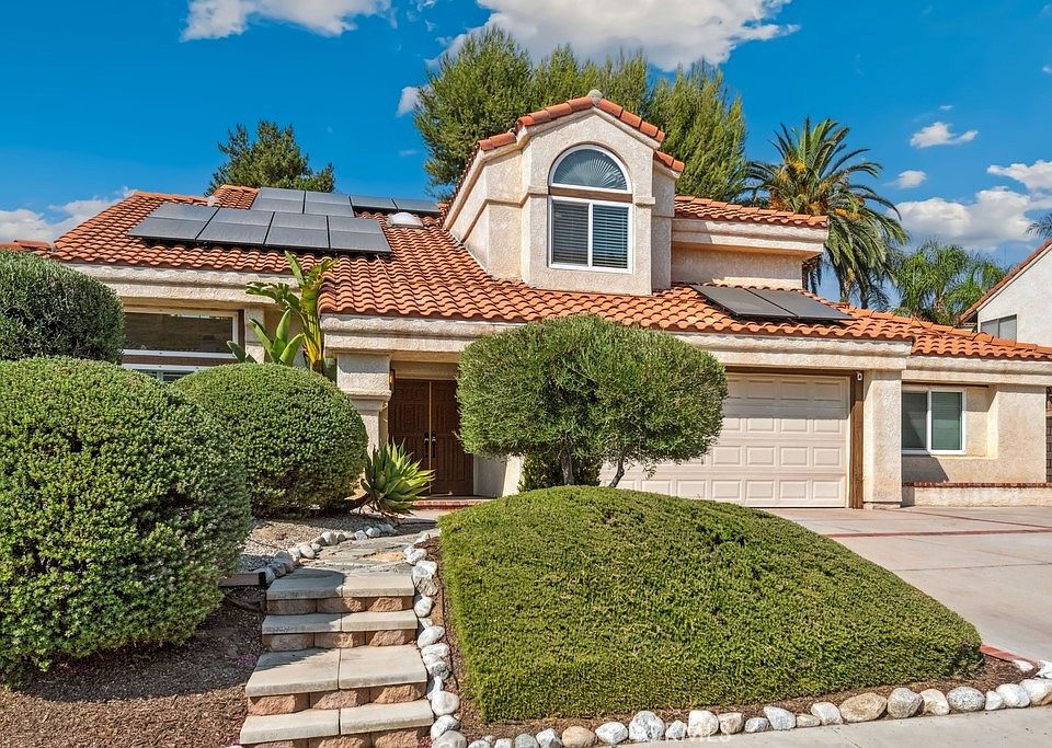 Bundle pricing available! Move-in ready 3 bed, 2.5 bath home featuring fantastic curb appeal, with mountain views, and OWNED Solar Panels! The interior is very spacious with soaring 2-story ceilings, recessed lights, plantation shutters, and waterproof vinyl flooring in the main living areas. Enter the home through double doors into the stunning formal living room and dining room with semi-circle staircase and chandeliers over the entry and dining area. The kitchen sits just off of the dining room and offers breakfast bar seating, quartz countertops with matching backsplash, an stainless steel appliances. The light and bright family room sits just off of the kitchen and offers glass french doors to the backyard as well as a fireplace, and a half bathroom and the laundry room complete the 1st floor. All of the bedrooms are located on the 2nd floor including the massive primary suite with private fireplace and a spa-like ensuite which features a dual sink vanity, a soaking tub, a separate shower and a large walk-in closet. There is also a full-size hall bathroom for the 2 secondary bedrooms to share. Relax and entertain in the private backyard with covered patio that spans the length of the home, lush green grass, and well manicured landscaping. There is also an XL 721 Sq ft 2-3 Car Garage and an expansive driveway that can accommodate a boat or RV! Conveniently located near Prado Park, trails, schools, shopping, dining, and not far from the 215 Fwy! Come and tour today!