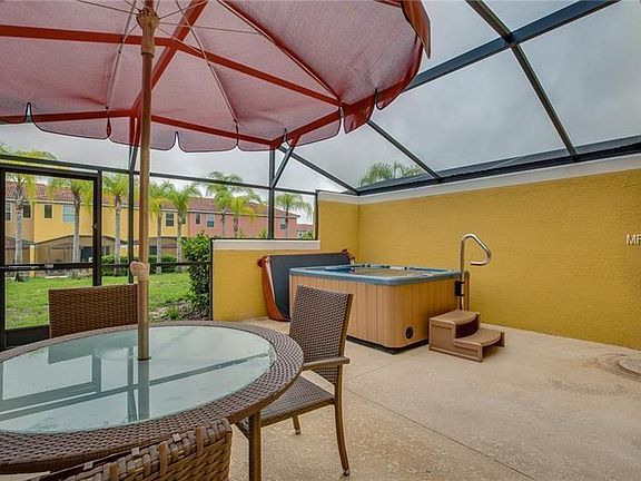Welcome to the beautiful Encantada Resort! This luxury two bedroom, two and a half bath townhome has it all! Located just minutes from Disney, this property is conveniently located with easy access to 192 shopping and dining. The property is tastefully furnished and has many attractive upgrades, including granite counter-tops in the kitchen. Downstairs you will find an open kitchen that looks out onto dining and expansive living area, a utility room conveniently tucked under stairs for efficient use of space, and the half bath. The outside features a screened in patio and hot tub, perfect for soaking up sun or cooking out. The upstairs hosts the two bedrooms and baths, both with upgraded furnishings and sized nicely for the space. Encantada Resort features a stunning clubhouse with two pools, two hot tubs, a fitness center, game room, and restaurant- it has everything for both vacationers, second homers, and full time residents alike! Call your realtor to see this one today.