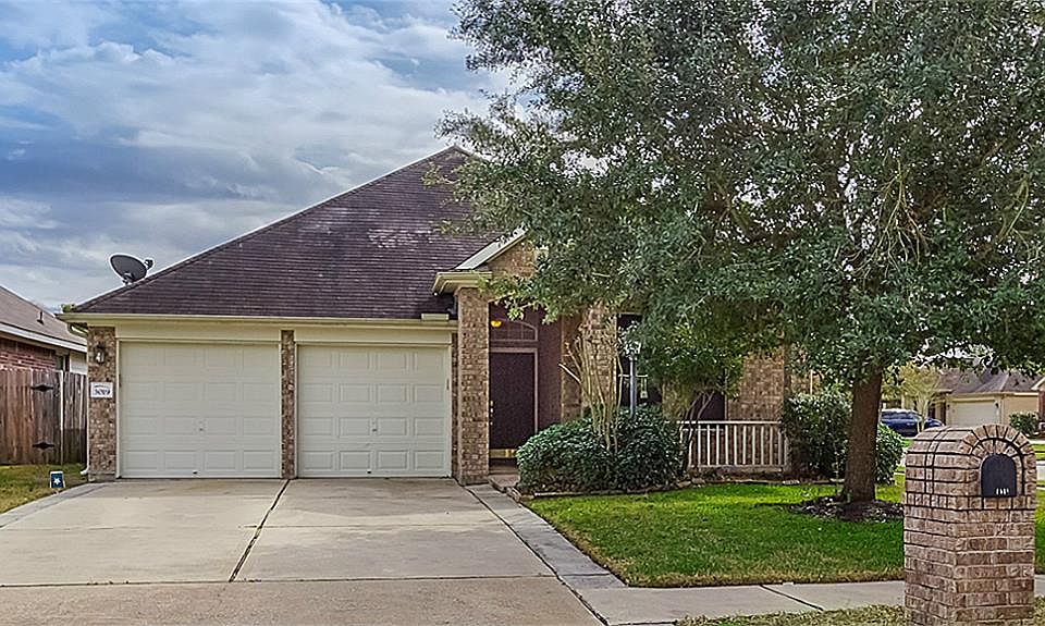 Beautiful 3 bedroom 2 bath home on a great corner lot in Spring Landing! This move-in ready home is spotless. Great living room with gas fireplace, large utility room off the kitchen, and fully fenced yard. Dual garage door openers on the 2 car attached garage. Spacious front porch with room for a swing or a bench. Fridge included! This home is located 1.1 miles from HEB and easy access to I-45.