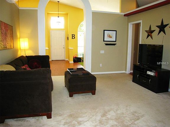 Enter this home from a covered front porch * Line of sight from the front door to screened pool, back yard and water view * Open & airy floor plan with vaulted ceilings throughout * Split bedroom floorplan * Kitchen with granite countertops, stainless steel appliances, plant shelves, canister lighting and breakfast nook overlooking the lanai, screened pool and lake * Master bedroom with vaulted ceiling * Master bath with double vanity, garden tub, separate shower, walk-in closet, linen closet and private water closet * Family room with fireplace, view of the pool and pond * Very open floor plan * Light & bright foyer with large window over the front door & matching Palladian Windows in the living and dining great room * Laminate floors throughout the living area and bedrooms with exception of family room and front guest bedroom (which have carpet) * Pool planned guest bath * Tile in the wet areas * Inside laundry room * Well maintained, in the past two years, new HVAC & ductwork, exterior paint, granite countertops in the kitchen and new roof in December 2011 * Desirable cul-de sac location at the back of the neighborhood * Fenced yard * HOA dues are approximately $168 per year * Walk to the Elementary and Middle schools - currently zoned for Partin Elementary, Chiles Middle and Hagerty High School * Old Republic Home Warranty * Please take the virtual tour for additional information