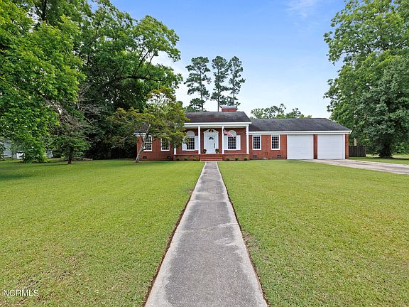 Old school charm and craftsmanship meets modern luxury! Only 25 mins from Camp Lejeune! This amazing home has everything you need. Nestled on over half an acre on a corner lot, this home comes complete with beautiful original hardwood floors throughout, gorgeous updated bathrooms with Bluetooth connectivity for singing in the shower, ceramic tile in the kitchen with breakfast nook, elegant built ins in the dining area, two fireplaces-one in the living room and the other in a cozy second den with exposed wood beam accents that connects to a huge rec room with ceramic tile floor, built in bar, pool table and dart board for entertaining people of all ages. Not to mention the mudroom that leads out to a double door two car garage big enough for cars and storage! And if this huge garage isn't enough room for storage the attic has a finished wood floor perfect for storing any of your seasonal or holiday décor. Out the back there is a large fenced patio perfect for outdoor entertaining along with a huge yard that would be any pet owners dream. All that make this a no brainer of a deal. Call today to see this one before it is gone!