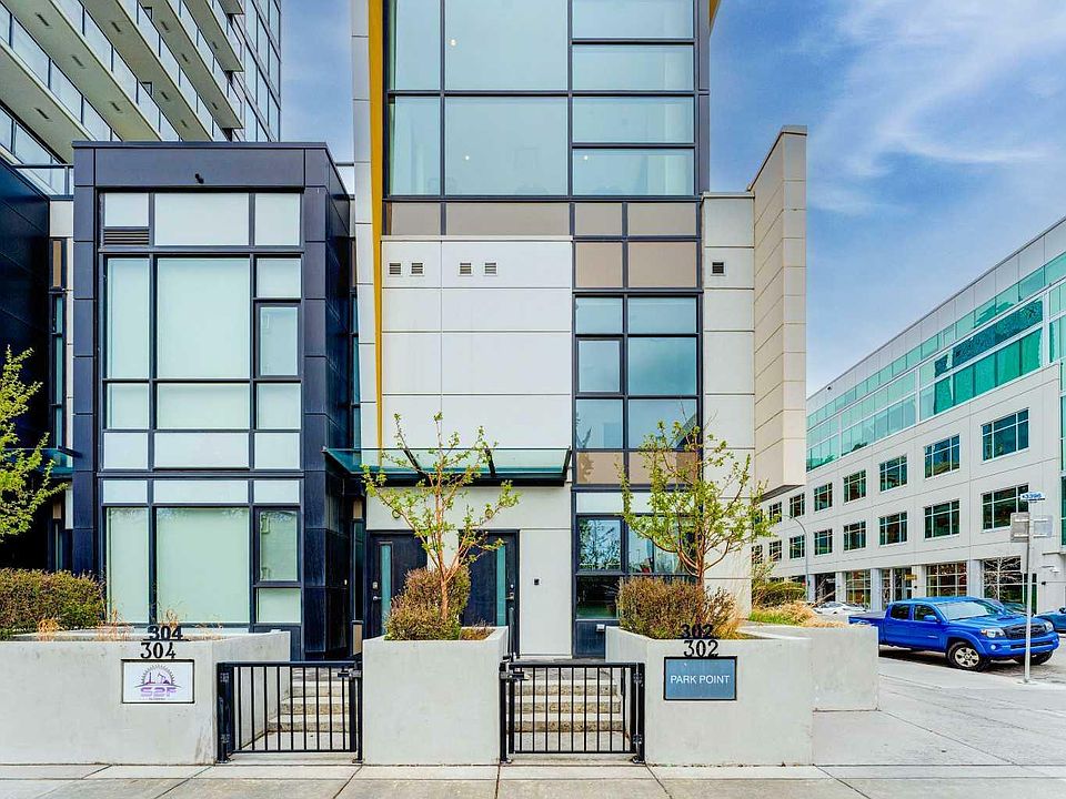 Step into a one-of-a-kind opportunity at Park Point with the largest corner concrete built townhome of the complex featuring over 1250 sqft, soaked in light and also zoned live-work. This unique offering is one of only eight units like this in the entire complex. This stunning unit offers the flexibility to combine both living and working areas to suit your needs. This multi-level townhome features 2 bedrooms and 2.5 bathrooms 2 titled parking spaces, storage and more. With street access on and a front patio that leads to an open concept main floor, you have plenty of space for entertaining and enjoying inner city life creating a fantastic floorplan that suits your lifestyle. The kitchen is well-appointed with ample counter space, making it ideal for both entertaining and unleashing your culinary talents. An additional 2nd side patio as well as a half bathroom, and access to the building's parking and amenities, complete this level. On the second floor, you'll discover two double primary suites, each with its own private en-suite bathroom and laundry in the hall. This home comes with the added convenience of two titled underground parking stalls and storage. Park Point offers a host of amenities, including a 24-hour concierge, the 2nd floor Zen terrace, a hospitality room with outdoor amenities and a fire pit, and a fully equipped fitness center, providing you with the best of both worlds, whether you're seeking a business space or a residential home. Centrally located in the heart of the Beltline, with easy access to downtown, 17th Ave, and 1st Street amenities, this property offers the perfect blend of convenience and space. Don't miss out on this one-of-a-kind opportunity.