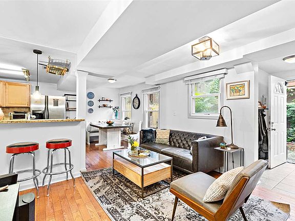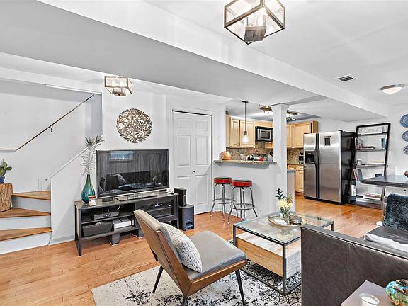 Secluded, 25 ft wide home with a manicured garden and slate patio, located 5 minutes to Grove Street PATH and restaurant row. This unique southern exposure duplex features include central AC, designer kitchen, ample storage, hardwood floors, and more!