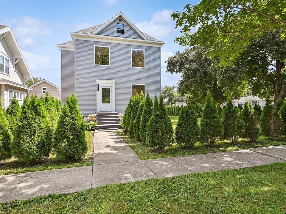 Extensively remodeled home with one of a kind, unique designs you will not find anywhere else. Inspired by Nordic and Japandi styles characterized by clean lines, natural materials, large windows, cozy colors and minimalistic designs. The main floor boasts 9 foot ceilings with tall oak doors. The Master bedroom has a walk-in closet and a full bathroom featuring a floating vanity with a half moon mirror. The spacious kitchen features wood countertops, floating shelves, stainless steel appliances and a hidden pull-out island. A sliding glass door provides easy access to the comfy deck. Original fireplace with bay windows and a porcelain chandelier makes for an impressive dining room. But not to be outdone is the Tiffany chandelier in the living room next to the open oak staircase illuminated with a chandelier from Turkey. Upper level has 3 bedrooms, an office,