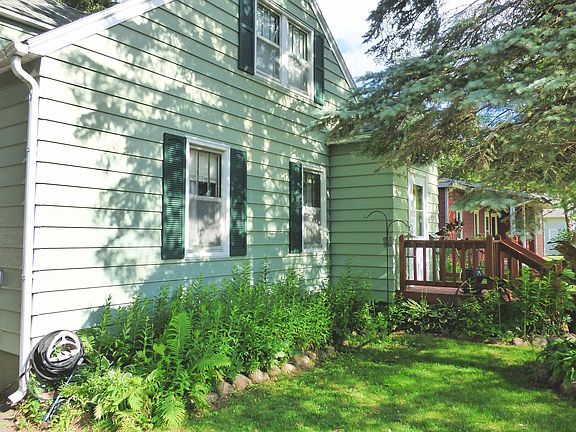 Nicely maintained and updated home located close to schools and conveniences. Original oak hardwood floors. Updated main floor bath and kitchen. Main floor laundry hookups in porch off of kitchen. Fenced back yard with nice gardens and large deck for entertaining. Upstairs has two bedrooms with tons of storage. Basement is unfinished with built-in shelving, additional laundry and stubbed in for bathroom. Basement has sump pump and drain tile. Double car garage has a forced air furnace - needs insulation in ceiling to be more efficient. Maintenance free siding, newer shingles, newer furnace and central air.