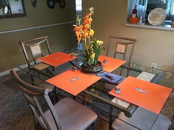 Burgundy at its Best! This is a lovely ground floor, furnished, end unit with all new windows. The pride of ownership shows in every inch as you wind your way through this lovely condo. You will be warmly welcomed by the tropical wooden bench in the foyer which leads to the fully equipped kitchen. Move to the right of the foyer and the tropical ambiance continues into your beautifully appointed dining room and living room and then out to your enclosed patio that also adds to your living space. The bedroom has a wonderful king size, adjustable bed for added comfort. The bath room has a step-in shower with grab bars and also has a stack washer and dryer. Newer Berber carpeting throughout living area with tile in the foyer, kitchen and patio. Whether you're looking for affordable Florida living on a permanent or part-time basis, this condo offers you everything you will need for a comfortable home. Close to shopping, the airport, eateries, McKechnie Field, Museums and some of Florida's finest beaches are just a short drive away.