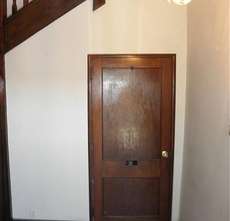 Two bedroom first floor unit features hardwood floors, separate middle of house dining area, enclosed back patio, private entry and access to lower level shared laundry area. Unit includes a shared two car garage with one side dedicated to the first floor tenant. Remaining parking is on street.