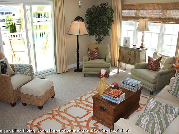 The three story floor plan offers two generous size bedrooms on the first floor with a common tiled hall bath. The second floor is all wide open living space including the tiled kitchen and dining area with powder room providing plenty of space for the entire family and friends to gather and enjoy each other’s company. The gas fireplace is the perfect way to warm a cool fall evening and the deck off the living room extends your party to the outside. The third floor finds two additional ensuite bedrooms. The master has its own deck to enjoy the view. Decorator appointed and furnished this comfortable home also has an attached garage for all those beach and bay toys.