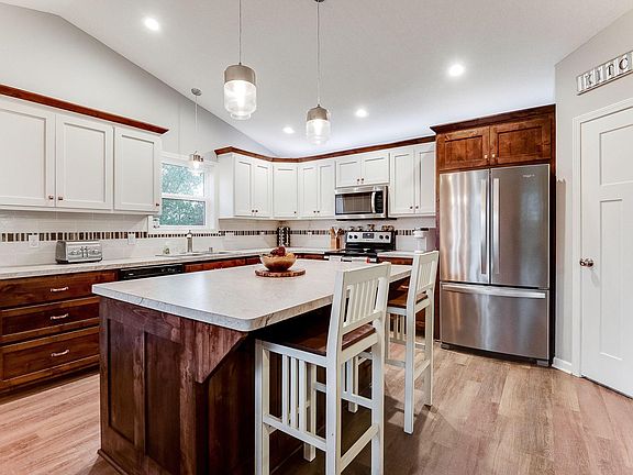 *This home has an assumable loan, with low interest rates.* You will fall in love with this split-level home, custom built by Paulmark construction. This home boasts a spacious and cozy living room, featuring a fireplace, where you can curl up with a book, or host a party. The large kitchen is a dream, with a walk-in pantry and an expansive center island. The basement has been framed, professionally wired, and has a roughed-out sauna room, with 220 amp wiring. The beautiful yard has an inground sprinkler system with 5 zones, keeping the yard lush and green. The large brick patio in the backyard is a perfect spot, with a fire pit, and patio seating. The 3-stall insulated garage has ample room for your cars and tools. The home is conveniently located within walking distance of the school, local street dances, and the Isanti County Rodeo. Don't miss this opportunity to own this amazing home!