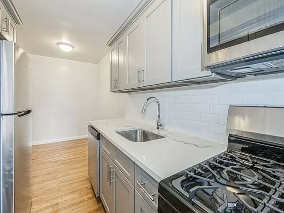 JUST RENOVATED LARGE TRUE TWO-BEDROOM WITH PARKING. Open layout allowing for light to flow throughout eat-in kitchen, foyer and large living room. Bedrooms are 16' x11' and 11' x 8'. Brand new appliances including dishwasher and six closets. More photos to come. Guaranteed indoor parking for only $175.00 per month. This great unit is in a financially secure and beautifully maintained building that offers manicured grounds, a renovated lobby, keyless entry and a video intercom system. Amenities include a modern laundry room on the main floor, a bike rack and short wait list for storage. The location is ideal. Less than 2 blocks to the R train or the express bus to Manhattan and the local bus is right outside the door. Large supermarket across the street and close to a variety of restaurants. No pets.